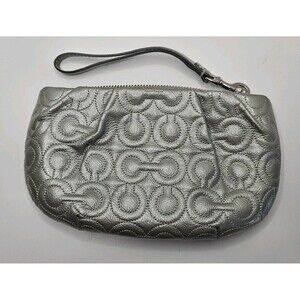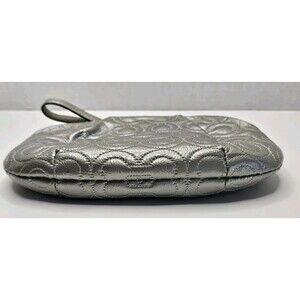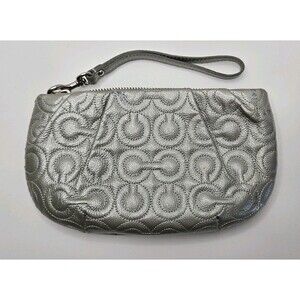 COACH Wristlet Quilted Leather Op Art Signature C Monogram 43229 Silver & Blue