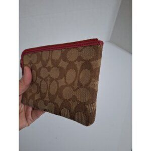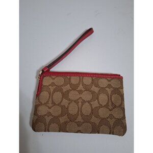 COACH Wristlet, Signature C Jacquard, Corner Zip, Khaki/True Red, #F58033
