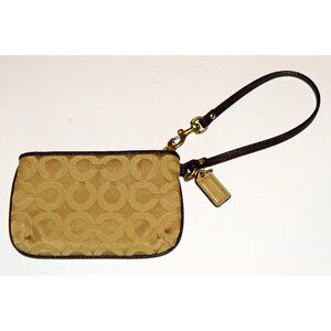 COACH Wristlet Tan/ Beige "C" print fabric w/ Dark Brown Leather Trim w/ hangtag