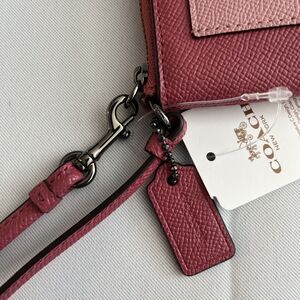 NWT COACH Color Block Wristlet in Rouge with light pink color outer pocket.