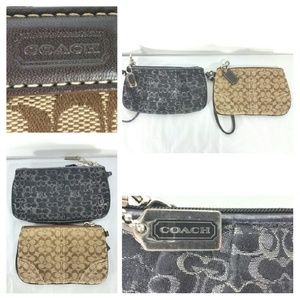 COACH Wristlets. Authentic Bundle of two. One black and one khaki wristlet. Very good condition. Black wristlet has some dirt inside on lining. See last pic for details.