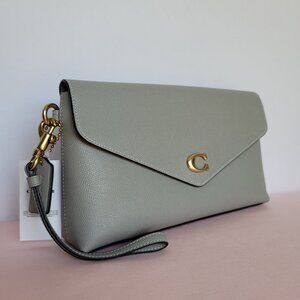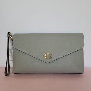 COACH Wyn Crossgrain Leather Clutch Wristlet- Dove Grey⭐