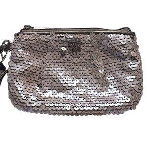 Coach Metallic Sequin Wristlet Clutch Purse Silver Glittery Bag Mini Zip Pouch