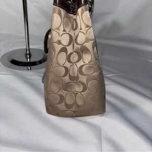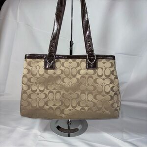 • Color: Khaki signature "C" print with dark brown leather trim.