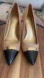 COACH “ZAN” Nude Patent Leather Black Pointed Cap Toe Heels US8.5