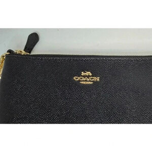 * COACH ZIP WRISTLET F73044 WITH CHAIN BLACK CROSSGRAIN LEATHER NEW NWOT