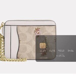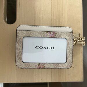 COACH Zip Card Case, Leather w Wrist Strap, ID Window, 3x4.5x0.75" Floral, CR971. Condition is New with tags. Shipped with USPS Ground Advantage.