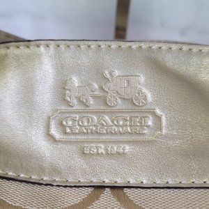 Coach shoulder style in natural color of beige and tan with combination of gold