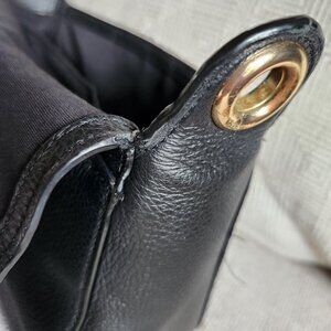 Detachable strap 20 1/4" drop. 11" x 8 1/4" x 3". Some wear near large grommets where strap clips onto bag - see photos. Some wear on strap where it would sit on shoulder - see photos. bag interior has a light odor.