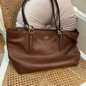 COACH brown leather tote shoulder bag