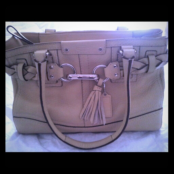 Bran new never used still in the box Coach bag. Creme color in leather with braided accent.