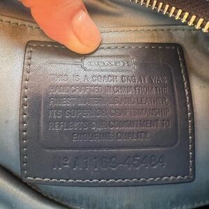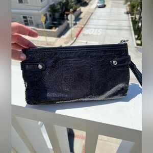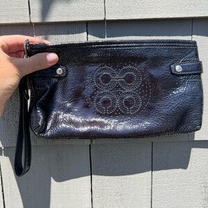 COACH navy patent leather clutch signature logo preppy classic large