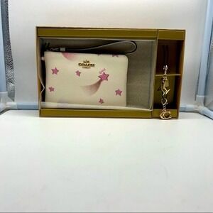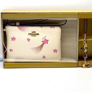COACH new Boxed Corner Zip Wristlet Disco Star Print signature C&martini charm
