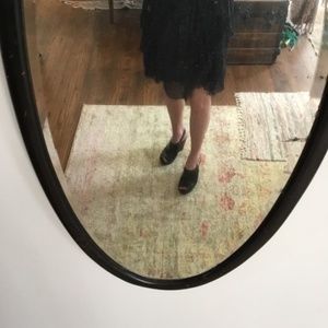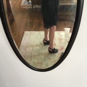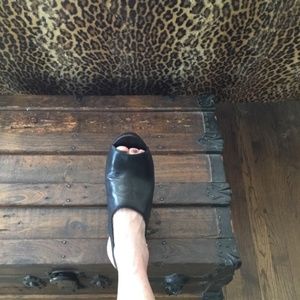 COACH over 4 “wedge black leather/brown wood heel 9.5 B