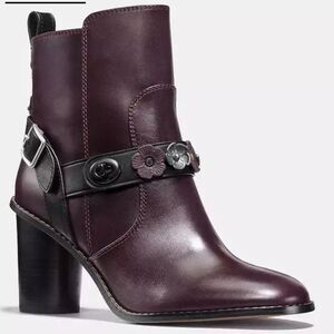 COACH soft Leather Moto Heel Ankle comfy boho Boots Oxford/black FG1032 size 6.5 EU 37