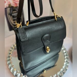 COACH vintage Willis Black Leather Top Handle Crossbody Bag 10.5x10x3.5”