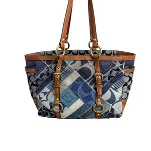 COACH vintage y2k Signature Patchwork Gallery Tote 12217 denim & brown rare