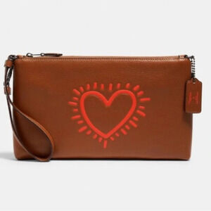 COACH x Keith Haring Leather Large Wristlet, Saddle, NWOT