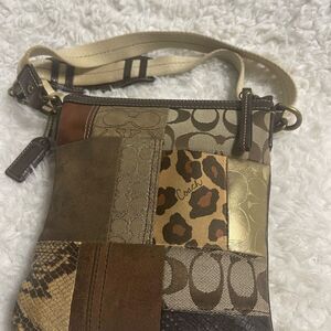 COACH Brown/Gold Metallic Signature Patchwork crossbody bag.front pocket.Top zipper.spacious inside lining. Pre owned see all pictures any questions.Please message. V1