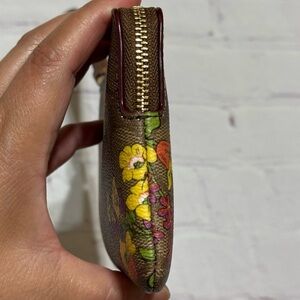 COACH Corner Zip Wristlet In Brown Signature Canvas With Wildflower Print Nwt
