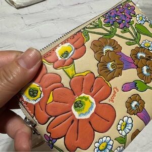 COACH Corner Zip Wristlet In Brown Signature Canvas With Wildflower Print nwt