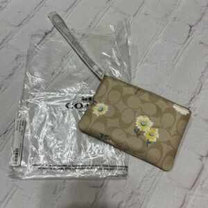COACH Corner Zip Wristlet In Signature Canvas With Daisy Flower Prints Nwt