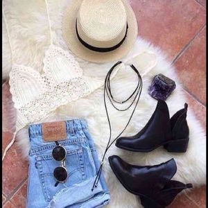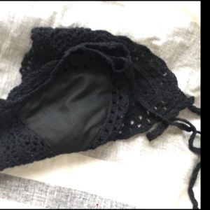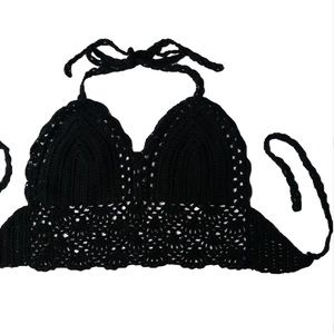 BLACK CROCHET BOHO STYLE CROP TOP SHIRT *NWT*