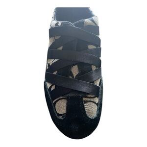 Gorgeous classic black strappy sneakers, slip on design with canvas fabric, excellent condition