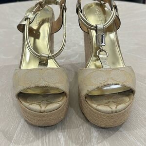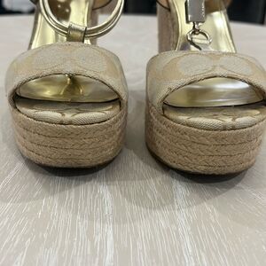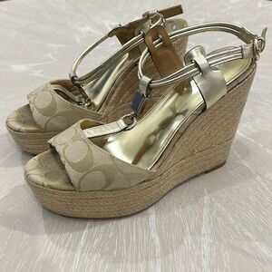 COACH LEAH Wedge Heels (A6051) Platform Open-Toe, Signature Cs, Beige 7.5