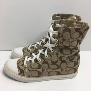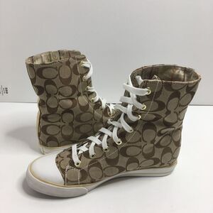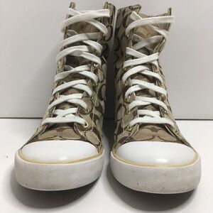 COACH (Q258) Monogram Logo "Bonney" High-Top Sneakers, Women Size 7.5B. Great Condition marks on shoes refer to