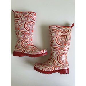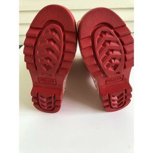COACH❤️RED/PINK PAISLEY Monogram Rubber RAIN BOOTS