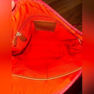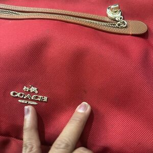 Elegant Coach crossbody in vibrant red. Features sleek design and practical compartments. Perfect for daily use.