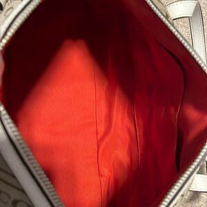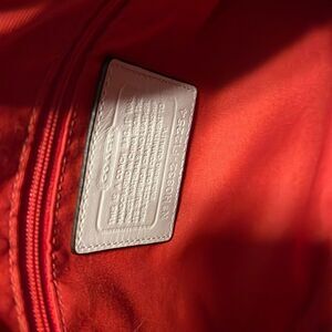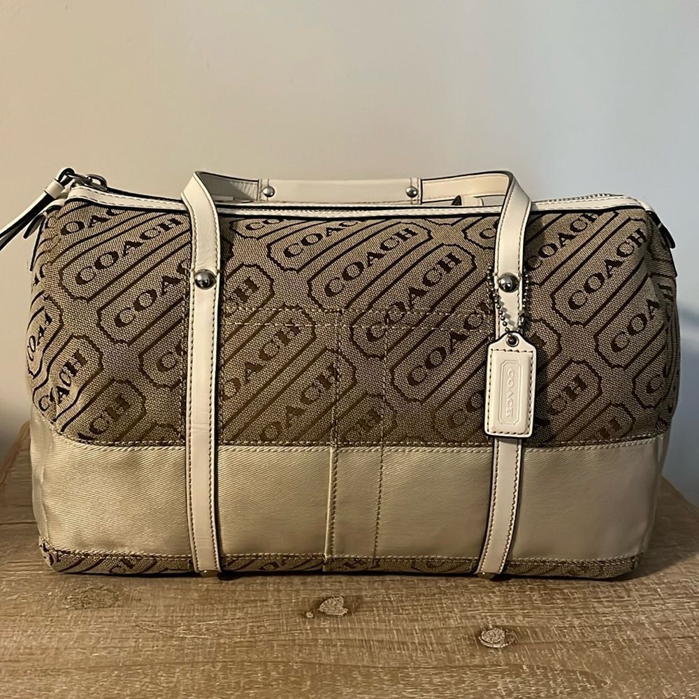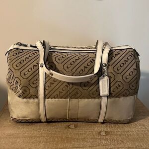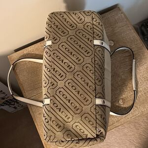 Coach Signature Canvas Satchel With Zip Top Closure Inside Has Zipper Pocket and Two Inside Side Slip Pockets Outside Has A Slip Pocket Also As Shown Dust Bag Also Included This Bag Is In Like New Condition