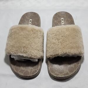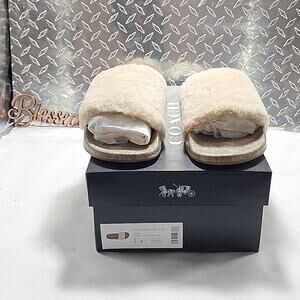🐨COACH🐨ULLA SHEARLING SLIDE COMFORTABLE COLORWAY IVORY LADIES 8 NWB📦ELEGANT