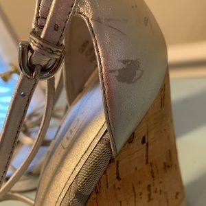 These made it through a lovely day in Napa Valley. Quite comfy and add a sweet glisten to any piece. Only a small scuffed area to one heel as pictured but when on isn’t quite noticeable at all given the beautiful knotted detail atop really draws the eye.