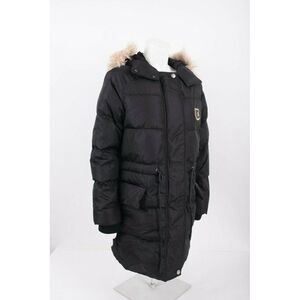 COACH 1941 Womens Down Puffer Jacket Coat Black Sz 0 Hooded Lamb Shearling trim NEW without tags