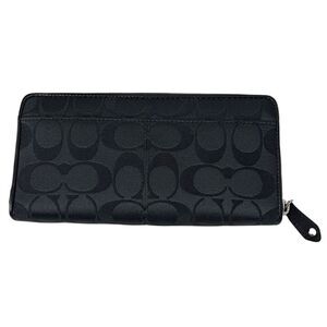 Chic Coach wallet in black. Features signature pattern and zip closure. Leather interior.
