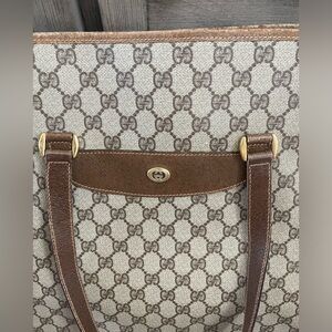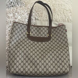 Fabulous Vintage Gucci Large tote in coated canvas⭐️Light rubs to the trim (see pix)⭐️Few spots in interior(easy to clean⭐️Clean corners with No rips holes or exposures⭐️This Gorgeous Vintage beauty has so much LiFE left in her⭐️Bag organizer included⭐️💯Authentic