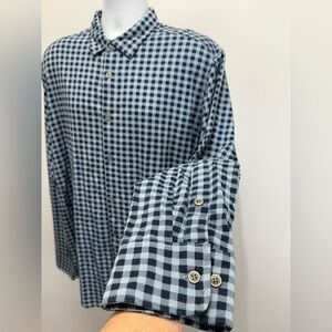 COASTAORO Men’s Blue and Navy check long sleeve button down shirt size L.