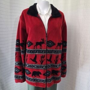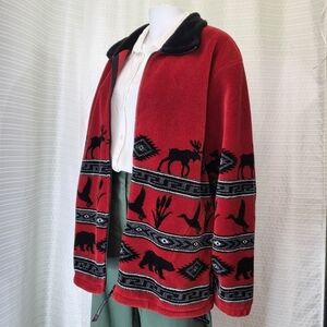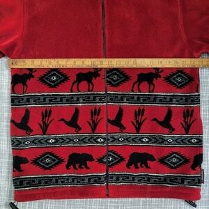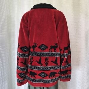 COASTLINES CANADA Fleece Coat Unique Western Native Theme Red Black Women's M