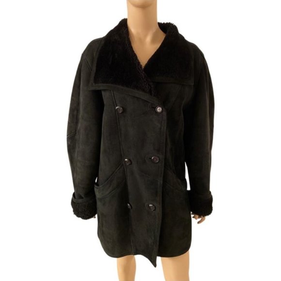 COAT, Suede Outer Layer, Wool Shearling Lining, Super Warm. Black.
