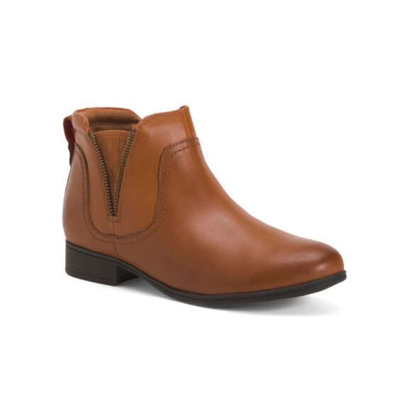 COBB HILL ROCKPORT Brown Wide Leather Crosbie Panel Comfort Boots