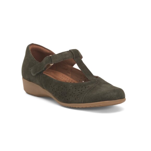 COBB HILL ROCKPORT Green Suede Rowen Comfort T-strap Shoes