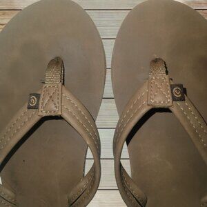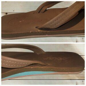 COBIAN - SIZE 8 - Women's Brown Flip Flops Sandals Blue Inner Accent