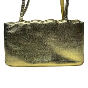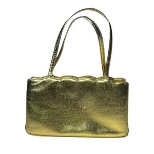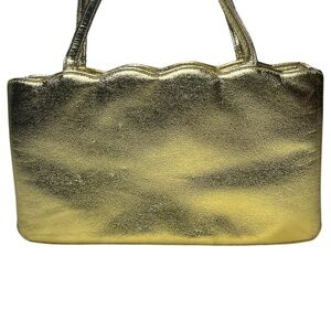 COBLENTZ VINTAGE Gold Leather Handbag Purse Kiss Lock Closure Small Evening Bag