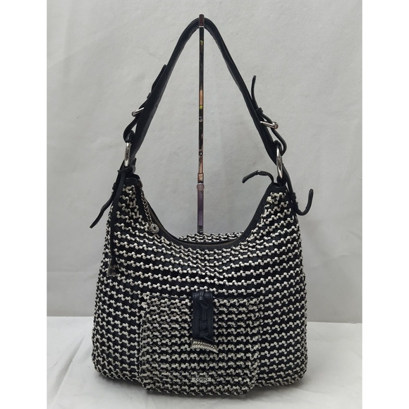 COBO International Black Nylon Mesh Woven Front Pocket Zipper Hobo Shoulder Bag