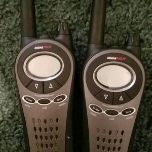 These radios will reach about 2 miles. Theu work great snd had a rodger beep weather. Scan and lots more settings.