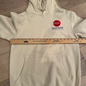 This Coca-Cola World of Coke Hoodie in size small is a must-have for any soda fan or collector. With its classic tan color and iconic branding, it's the perfect addition to any wardrobe or collection. Whether you're wearing it to show off your love for Coca-Cola or adding it to your collection of advertising and collectibles, this hoodie is sure to impress. So don't miss out on the chance to own this NWOT Coca-Cola World of Coke Hoodie! Purchased at the World of Coke in Atlanta.