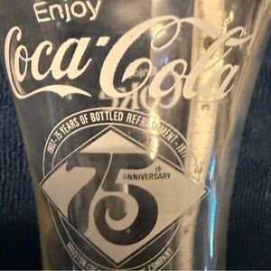 vintage Coca-Cola 75th Anniversary drinking glass.