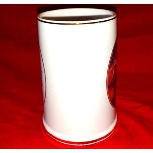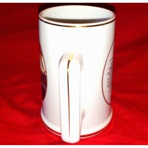 This porcelain mug stands 4 1/2” tall & is about 3 1/4” in diameter